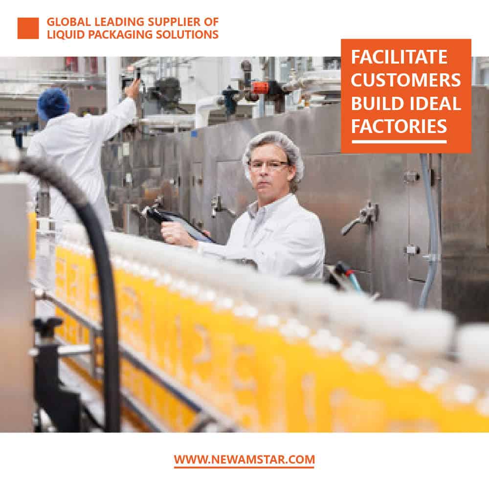 Over the years, Newamstar has always adhered to the concept of “innovation-driven development and quality wins market”. Focusing on the five major fields of beverages, dairy products, liquors, seasonings and household chemicals, Newamstar provides complete intelligent equipment and solutions including water treatment, pre-mixing, bottle blowing, filling, secondary packaging, handling robots, and intelligent stereoscopic warehouses for customers worldwide.